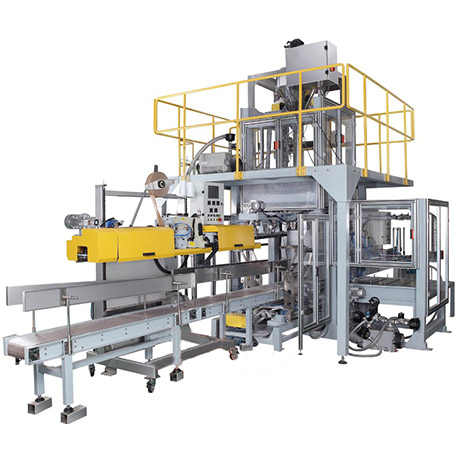 全自動(dòng)(粉料)給袋包裝系統(tǒng)主要針對(duì)化工、食品等行業(yè)而研制的新型包裝機(jī)組。該機(jī)組具有自動(dòng)供袋、上袋、稱(chēng)量、填充、封口等功能??砂b物料如顏料、面粉等粉狀、超細(xì)粉料。